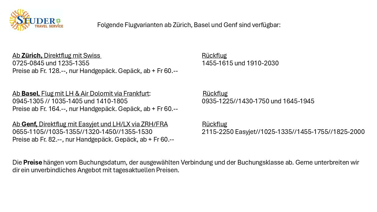 - Flug oder Anreise per Bahn